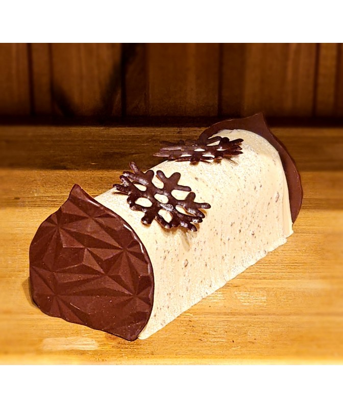 Bûche N° 5 Glace noix de pécan marbrée au caramel de sirop d'érable / glace vanille tonka 20cm / 4 à 6 personnes